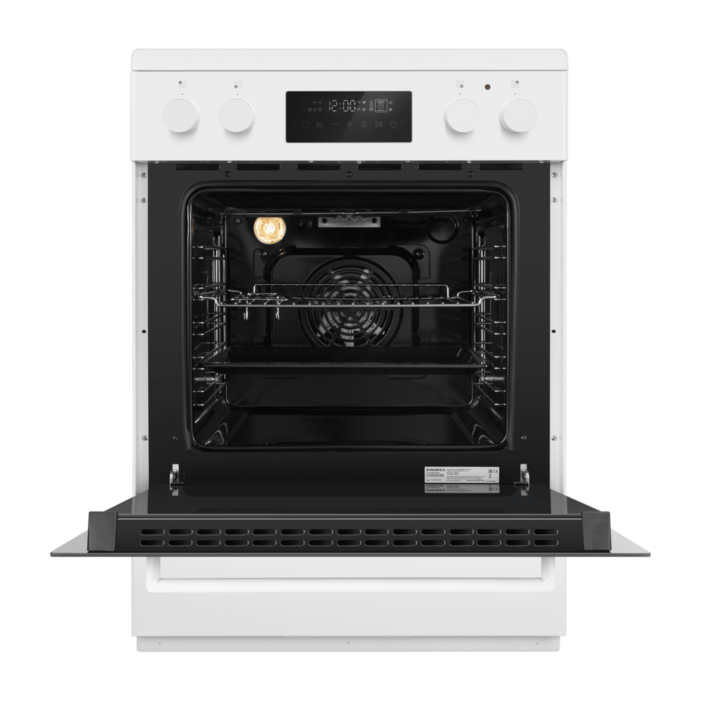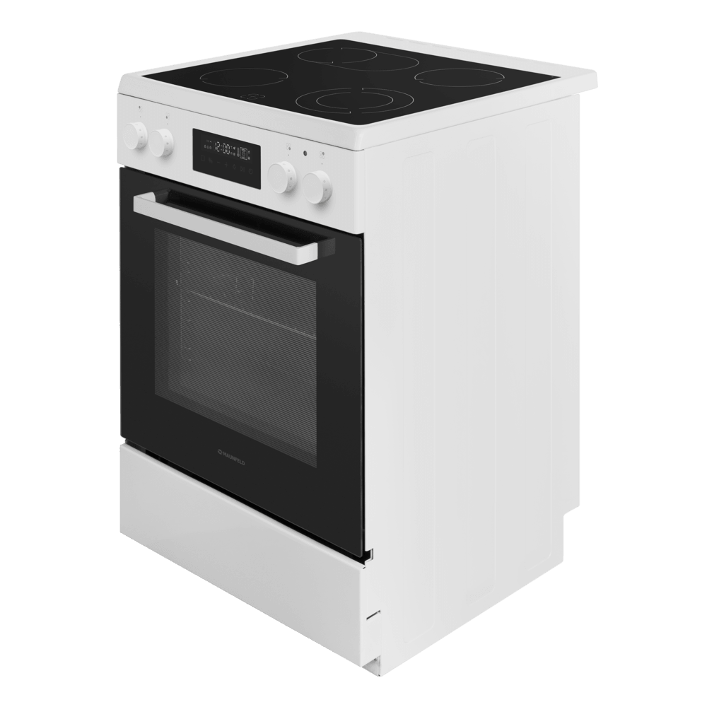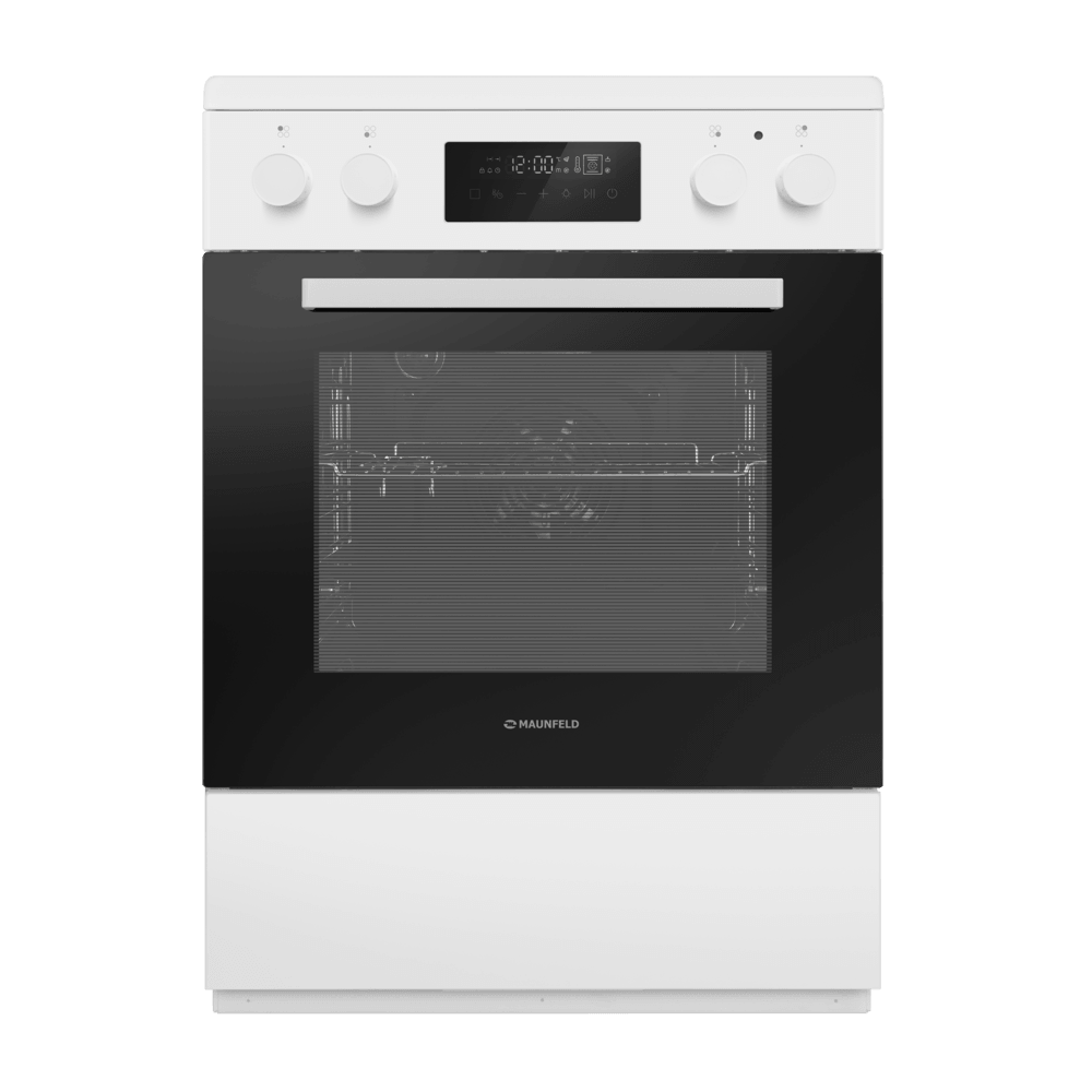Электрическая стеклокерамическая плита MAUNFELD MEC611CW09TD — практичное решение для тех, кто хочет получить полноценную духовку и удобную стеклокерамическую поверхность в едином корпусе. Модель сочетает лаконичный белый дизайн и продуманную эргономику: понятные переключатели, дисплей и электронный таймер помогают легко контролировать процесс готовки.