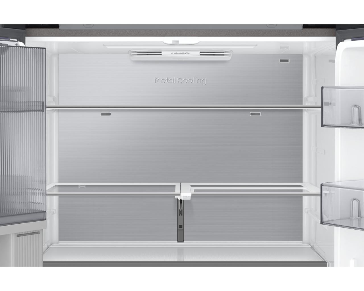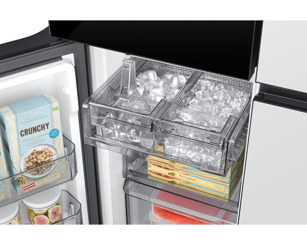 Холодильник Samsung RF9000DC — это вместительное и технологичное решение для большой семьи, выполненное в формате French Door (четыре двери). Общий объем 676 литров, разделенный на три независимые камеры, позволяет организовать хранение продуктов с максимальным комфортом. Модель оснащена инверторным компрессором, полной системой No Frost в обеих камерах, встроенным ледогенератором и интеллектуальным управлением через Wi-Fi. Стильный белый корпус со стеклянными дверями и внутренними ручками гармонично впишется в современный интерьер просторной кухни.