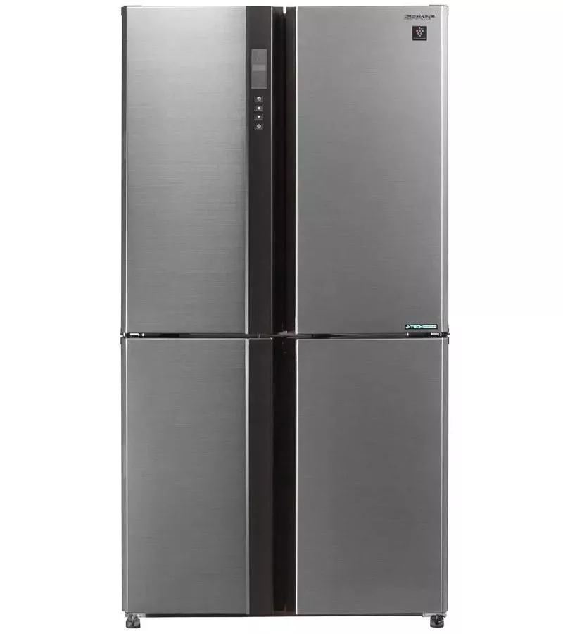 Sharp SJEX93PSL — четырёхдверный многокамерный холодильник Side‑by‑Side в серебристом корпусе. Модель сочетает огромный полезный объём (556 л), инверторный компрессор J‑Tech Invert и инновационные технологии очистки воздуха. Подходит для больших семей и тех, кто делает запасы продуктов на неделю вперёд.