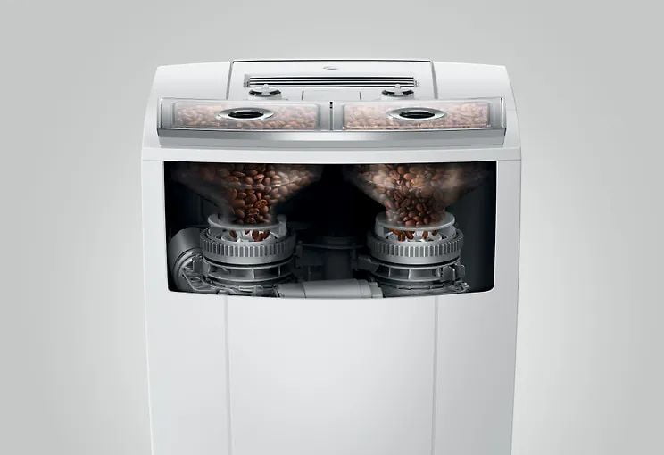 J8 Twin открывает совершенно новый мир наслаждения кофе. Устройство способно обрабатывать две разные кофейные смеси, предлагая большое количество вариантов на любой вкус. Независимо от того, хотите ли вы добавить порцию кофеина в утренний кофе и предпочитаете кофе без кофеина вечером, или же вы хотите смешать несколько обжарок одновременно – J8 Twin может это обеспечить. Эта компактная машина оснащена двумя высокоэффективными керамическими кофемолками PAG3+. Помимо того, что кофемолки обеспечивают неизменно точные результаты помола, они также имеют функцию контроля аромата, которая активно контролирует равномерность помола. Между завариванием кофемолка находится в режиме ожидания. Это экономит кофемолку, максимально продлевая срок ее службы, обеспечивая при этом постоянство восхитительных ароматов.