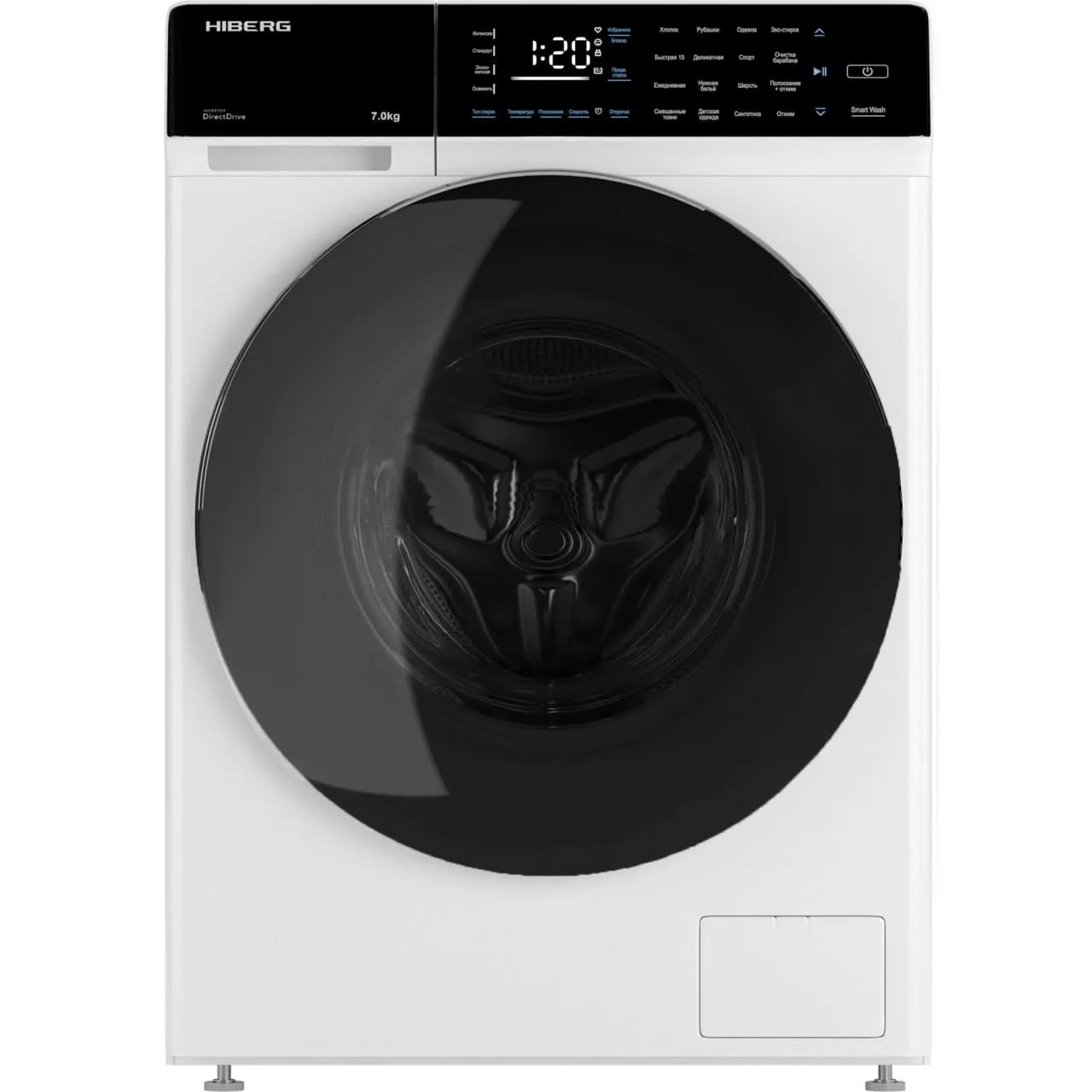 Машина отличается большим набором функций и программ для настройки режима для каждого типа ткани. Кроме того, HIBERG I-DDQ9-712 имеет удобный интерфейс, позволяющий легко ею управлять.