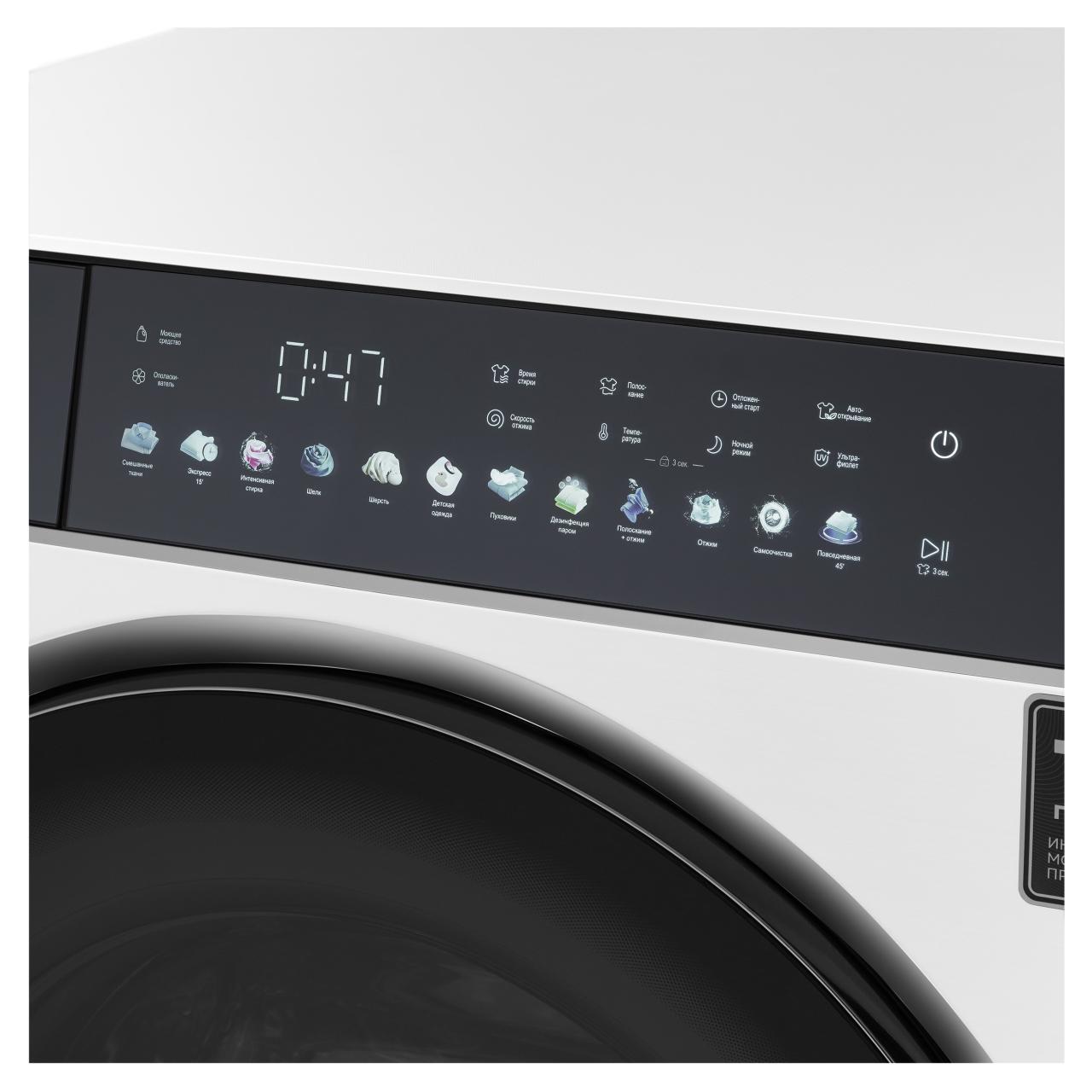 •    Дополнительные особенности: Инверторный мотор с прямым приводом, Дезинфекция паром, Ночной режим, Диспенсер с автодозатором