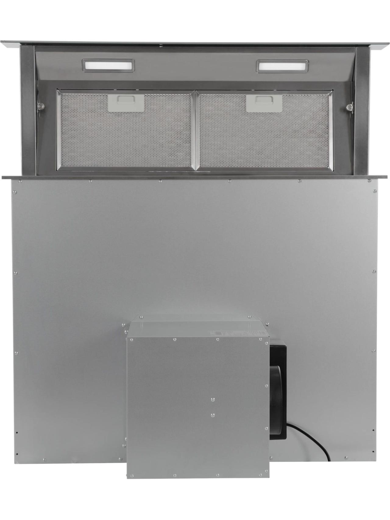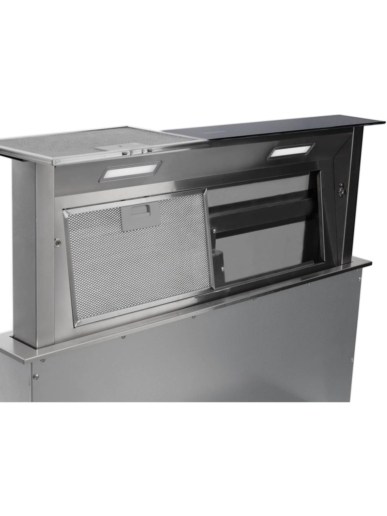 Благодаря нисходящему потоку воздуха, вытяжка с мощностью двигателя 250 Вт и производительностью 1000 м³/ч позволяет быстро очистить воздух от запахов во время процесса приготовления пищи, а алюминиевый жироулавливающий фильтр предотвращает попадание жира и других загрязнений на детали двигателя.