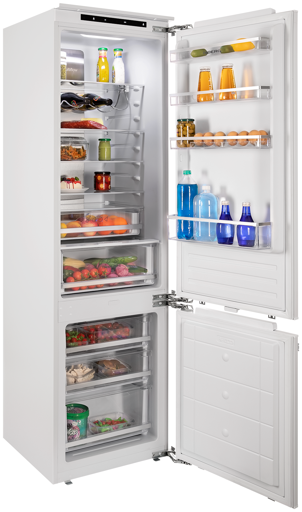 Встраиваемый холодильник HIBERG RFCB-455 F NFW с общим объемом 307 л идеально впишется в кухонный гарнитур, буквально «сливаясь» с ним, а возможность перенавешивания двери создает удобство открывания с нужной стороны.