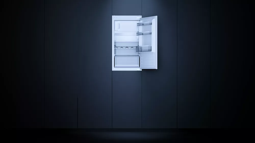 Встраиваемый холодильник Kuppersbusch FK 3305.0i с внутренней морозильной камерой — идеальное решение для небольших кухонь, где важны каждая деталь и каждый сантиметр пространства.