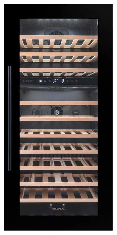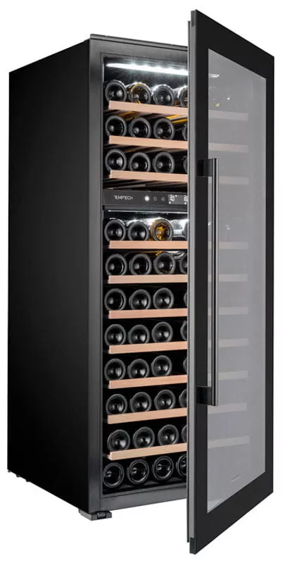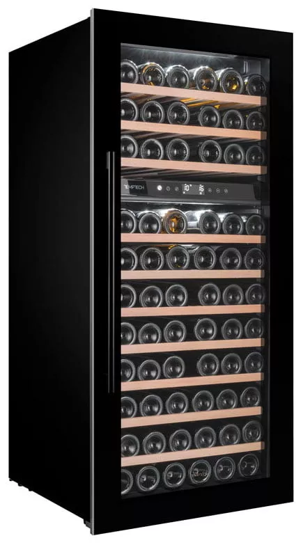 Данная модель винного шкафа оборудована вентиляторами, которые обеспечивают в нем циркуляцию воздуха, поддерживая постоянную и стабильную температуру. Конденсат используется повторно и поддерживает в приборе оптимальную влажность, а активный угольный фильтр обеспечивает свежий и чистый воздух.